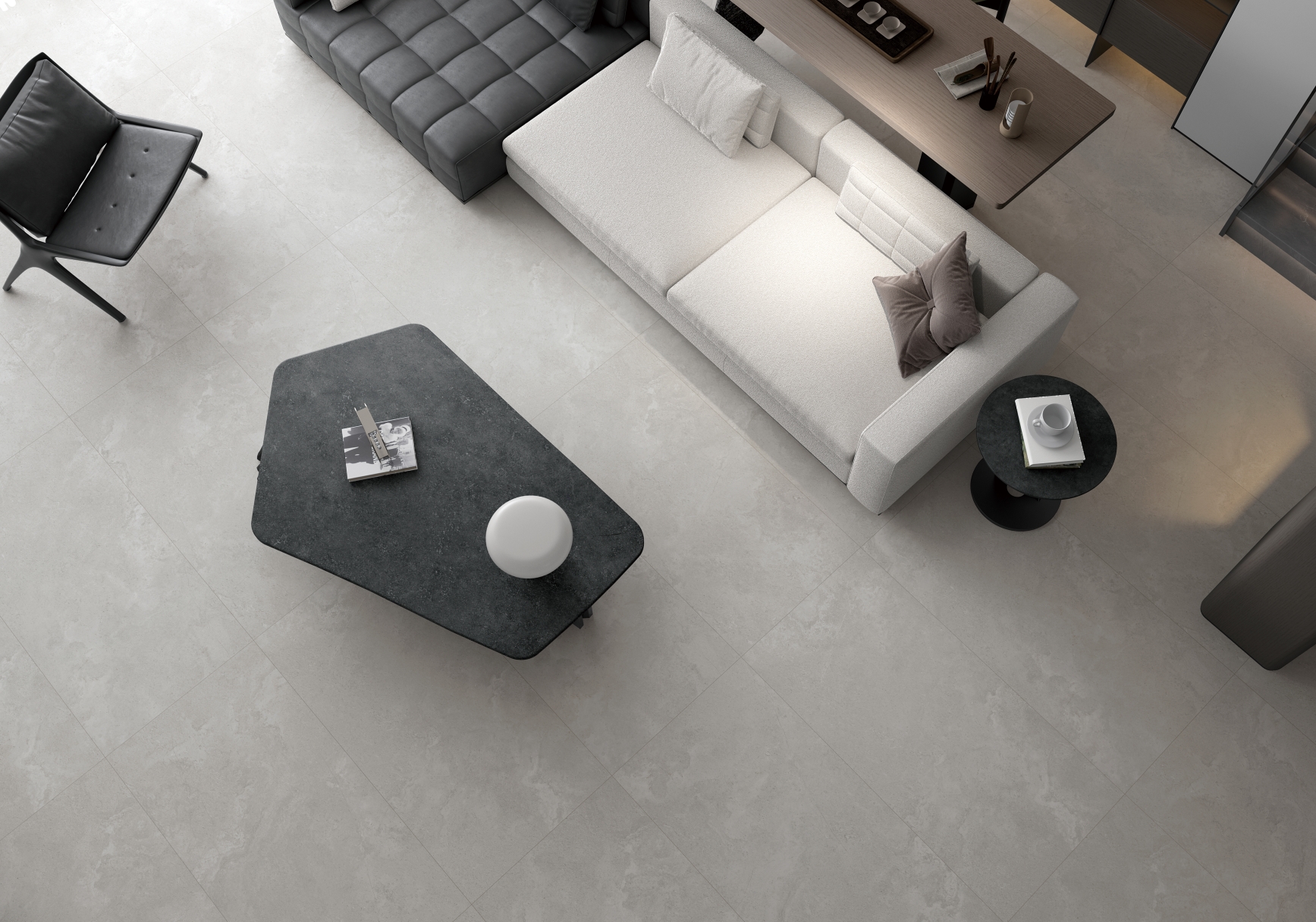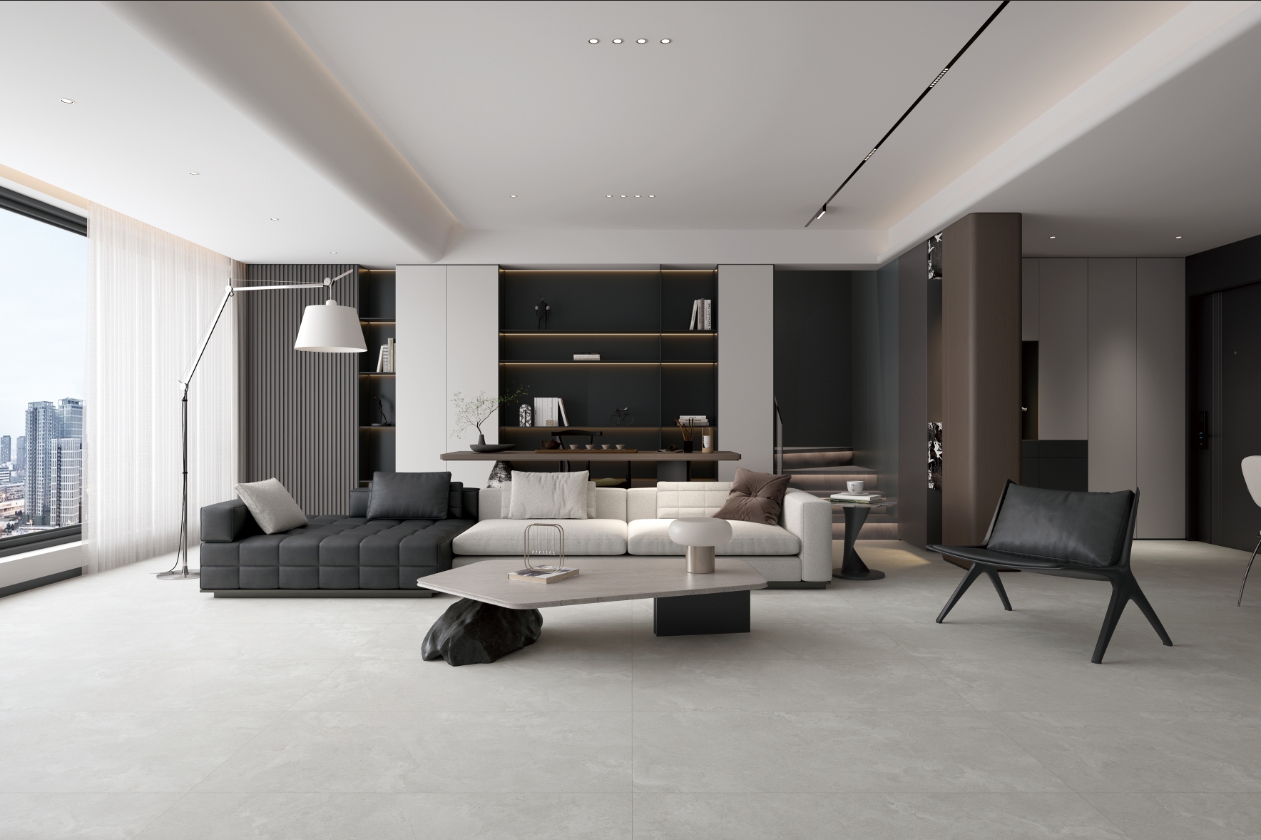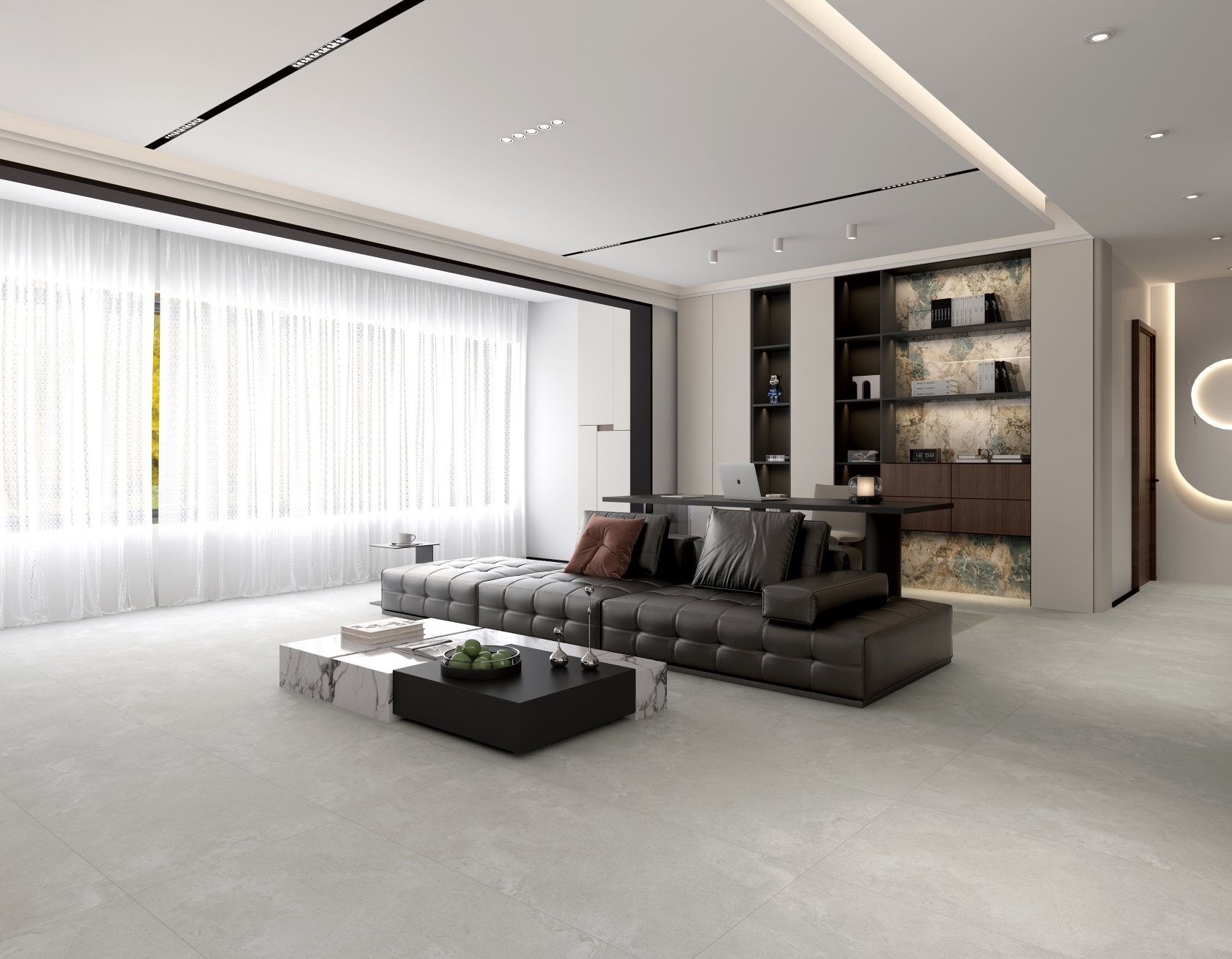 獨特時尚的米杏色調,變幻莫測的漸變紋理流動,彷如歲月的雕琢,給空間帶來連貫、完整、延伸的無垠視界。