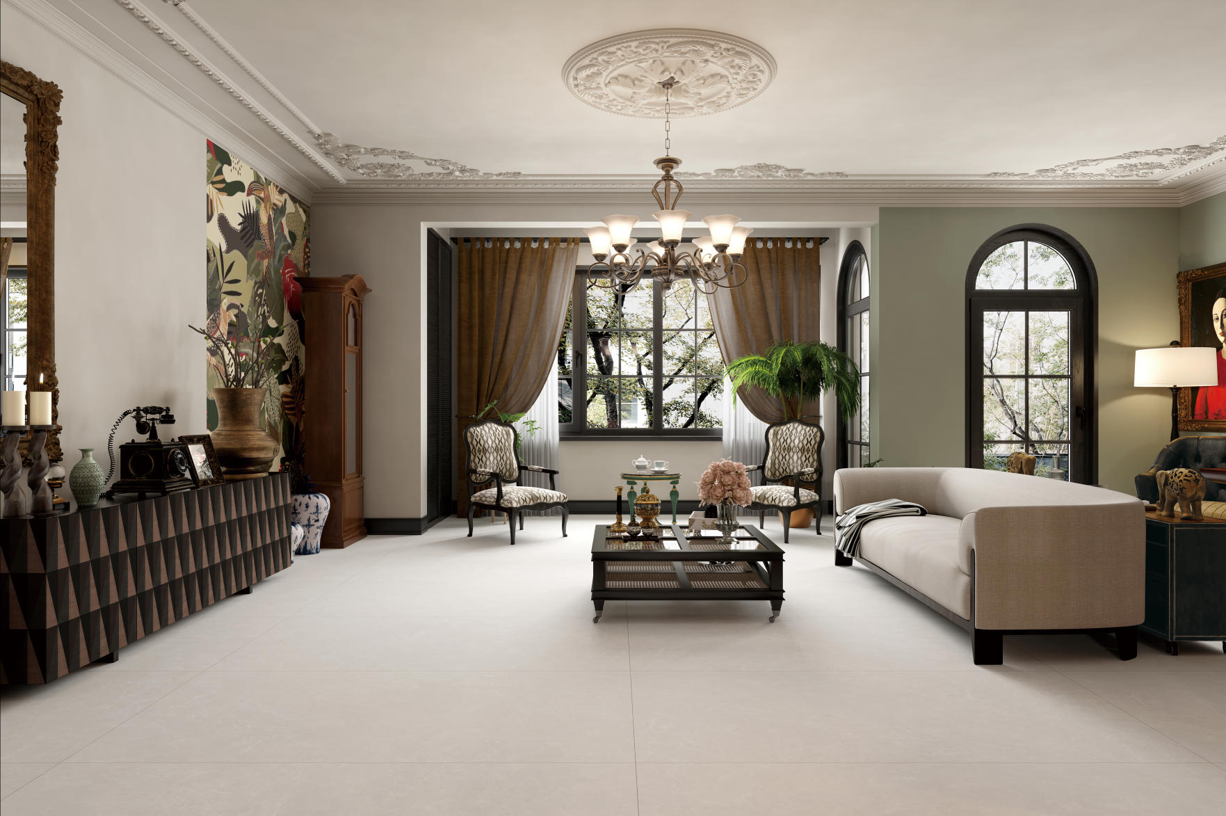 靈感來源于波爾圖大教堂的文化遺跡,質感的灰色是歷史的見證,表面紋理簡約、悅目,悠然地展現出米灰的深沉與靜謐,記錄時光的流轉,創造出一片獨特的空間奇跡。