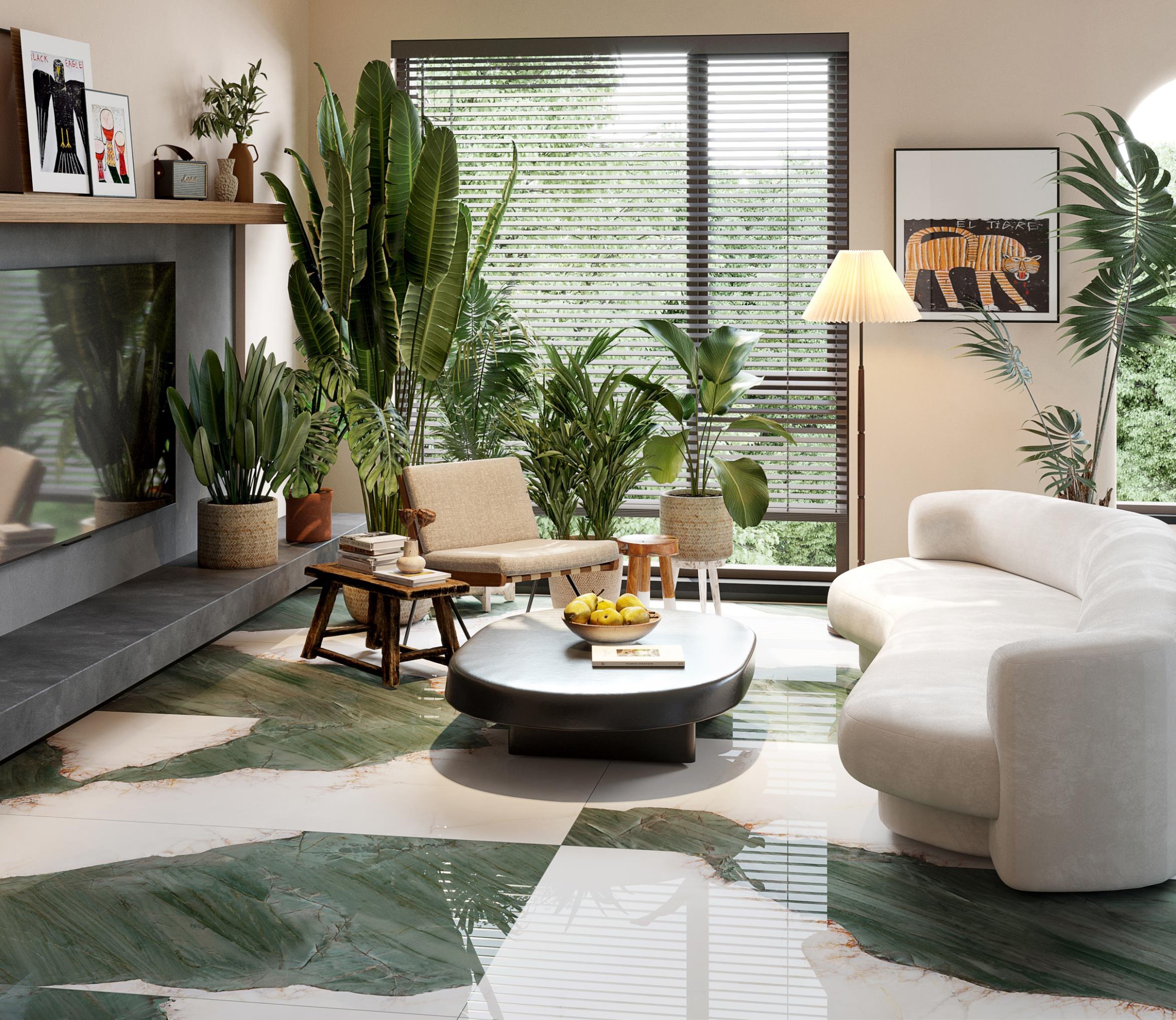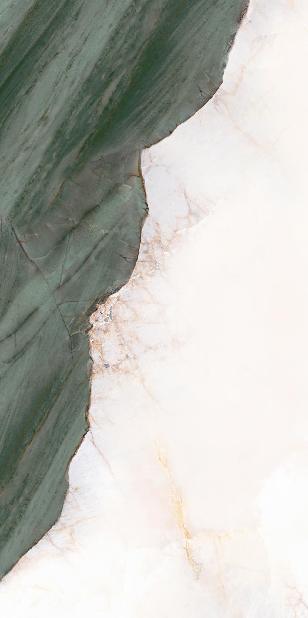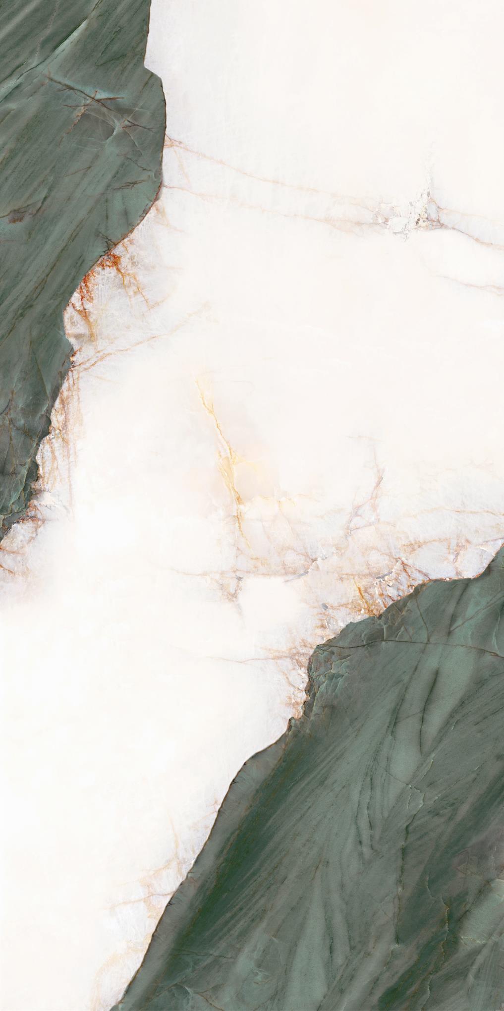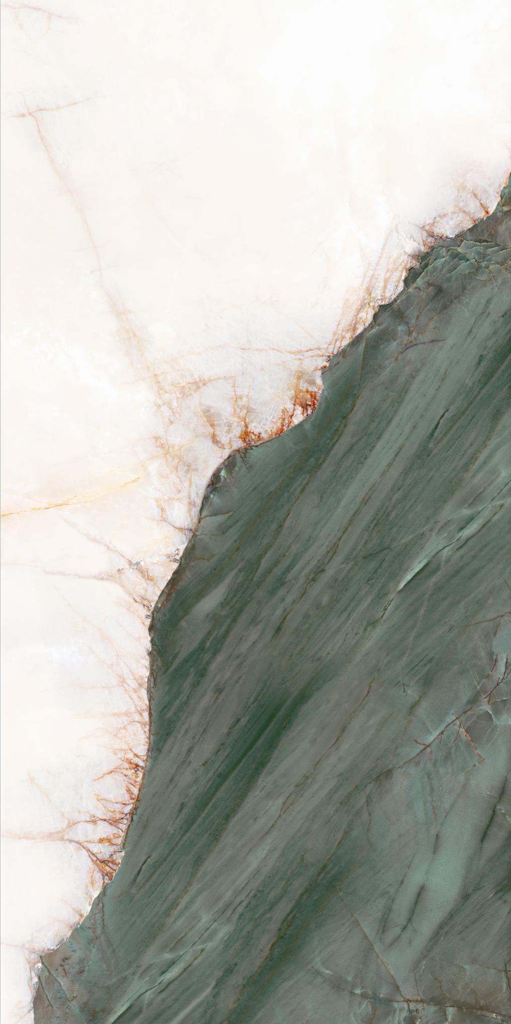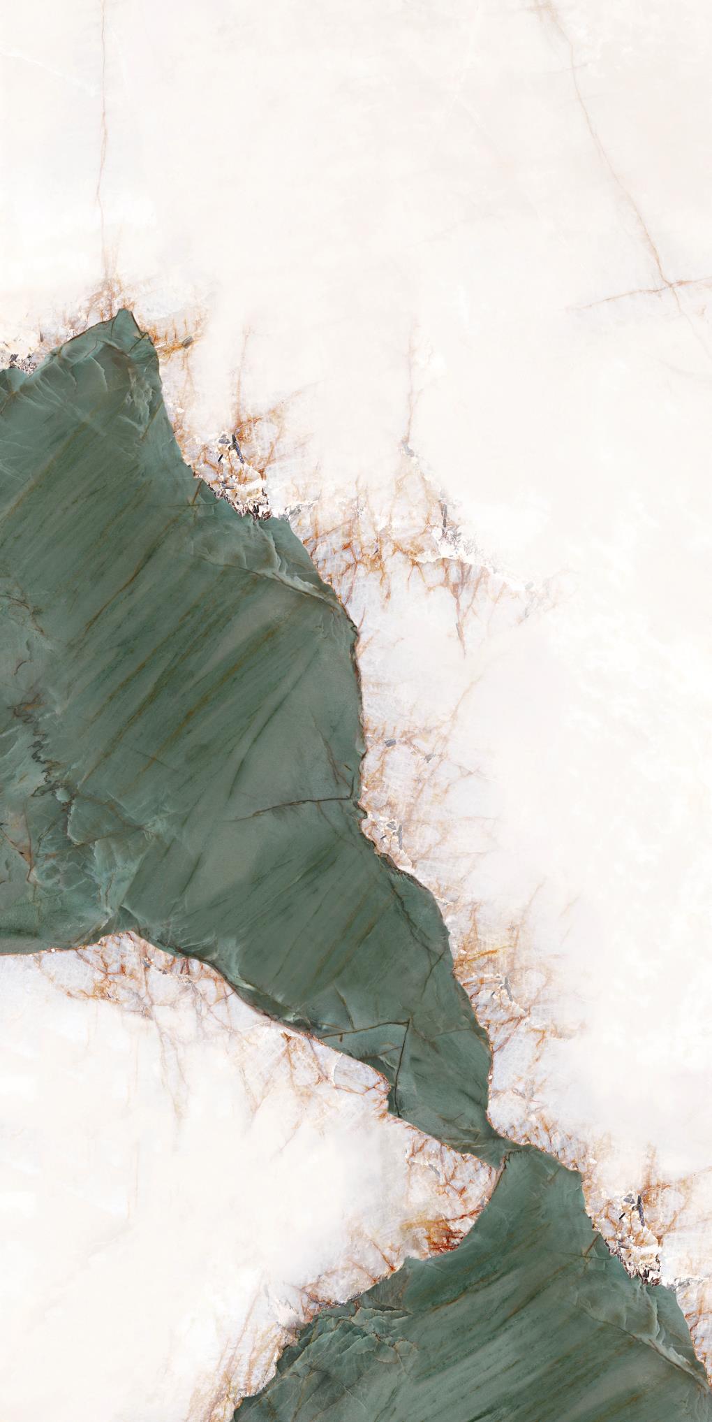 源于安第斯山脈上的珍罕寶玉。高飽和度的綠色基調,勝似哥倫比亞祖母綠,蜿蜒的紋理,宏如萬頃碧波浩蕩之勢;肆意延伸的暖色紋理,似冰似玉且溫凈無瑕,有凝靈透徹之感。渾然天成的通透美感散發出與生俱來的高貴,寓意祥瑞降臨、地位尊崇的象征,更為空間平添幾分生機盎然。