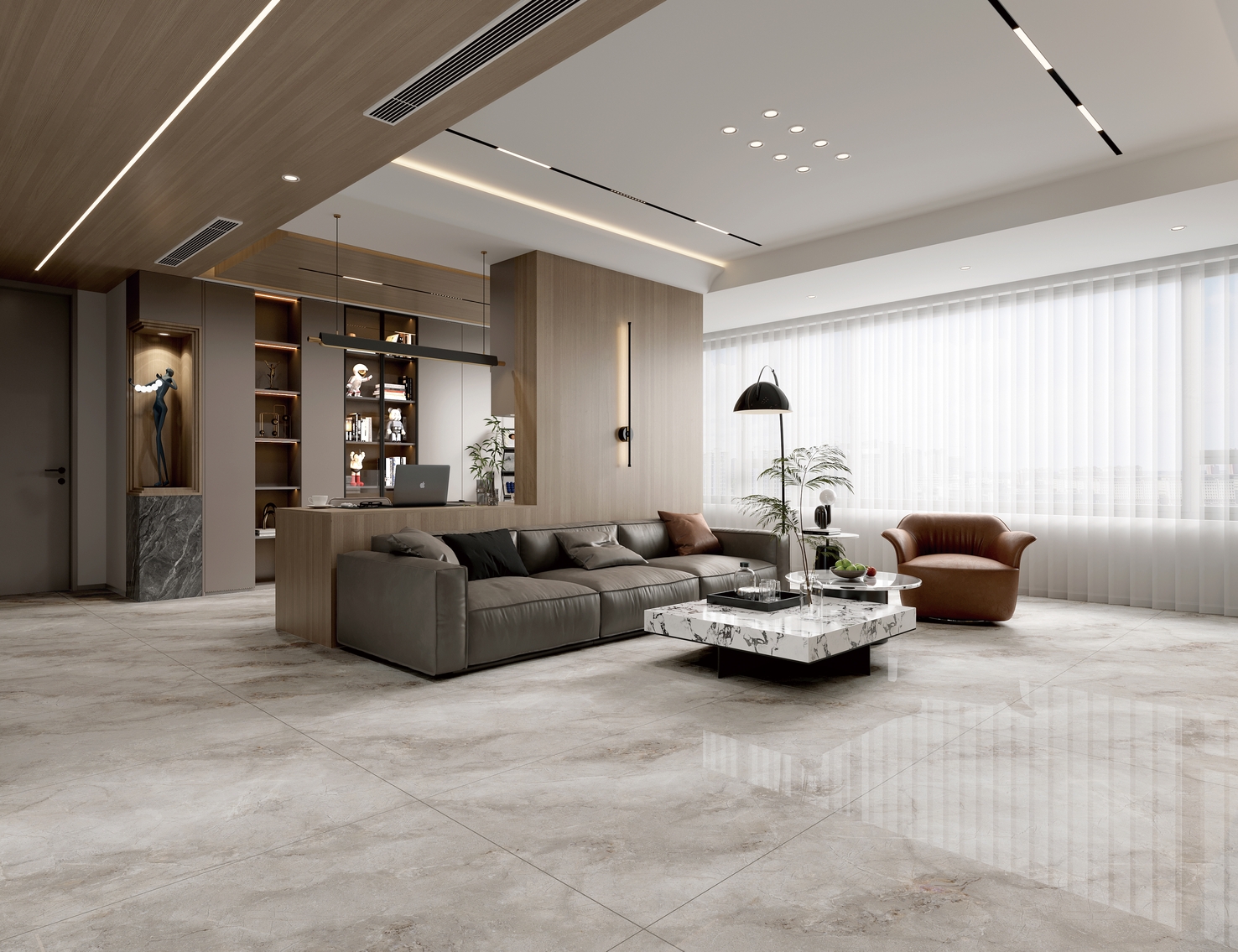 繾綣靈動的紋理,深淺灰線條的自然游動,鎏金褐色線紋點綴其中,與空間相得益彰,傳達出匹配現代極簡的調性美感。(任意無限連紋)